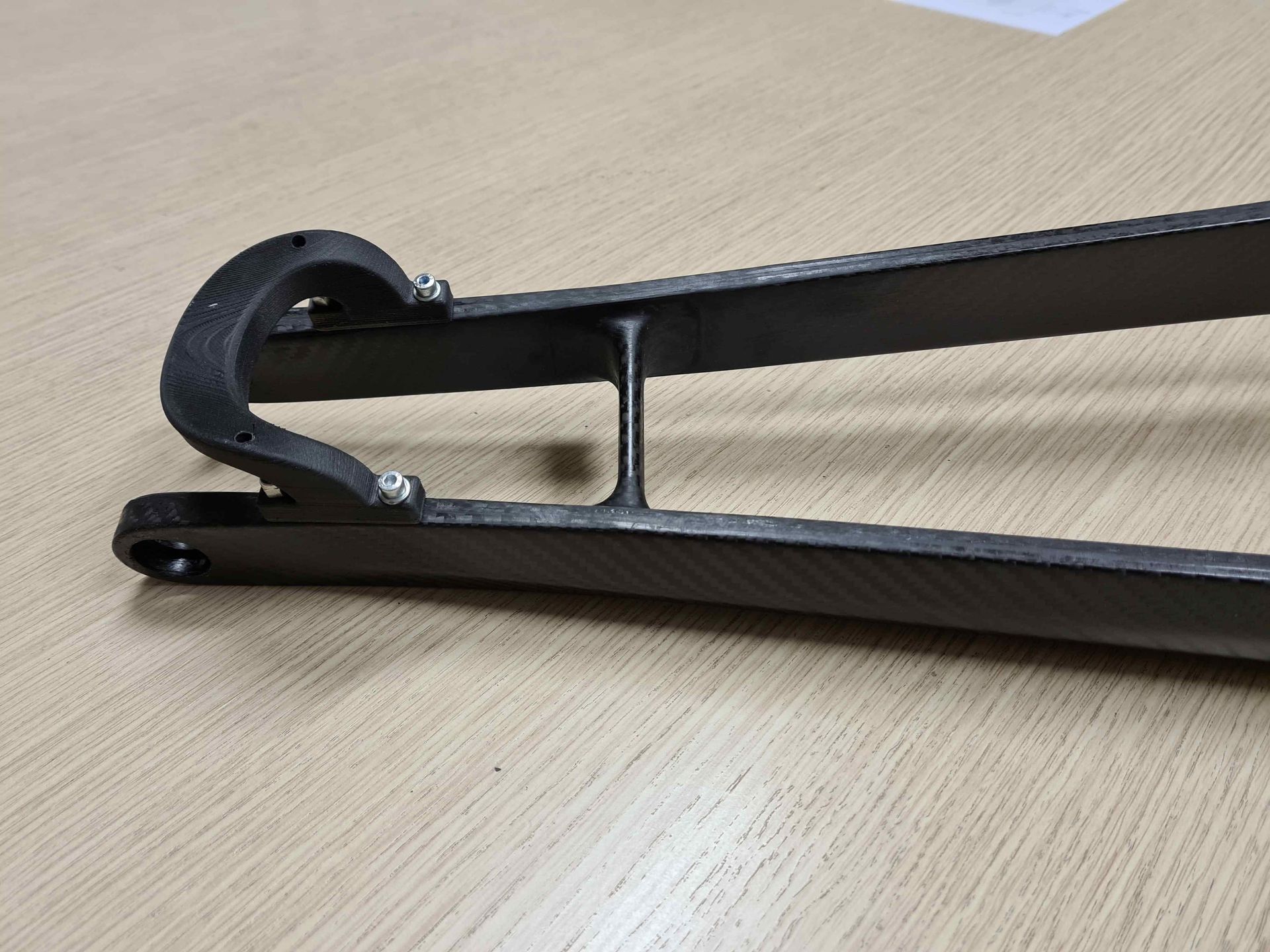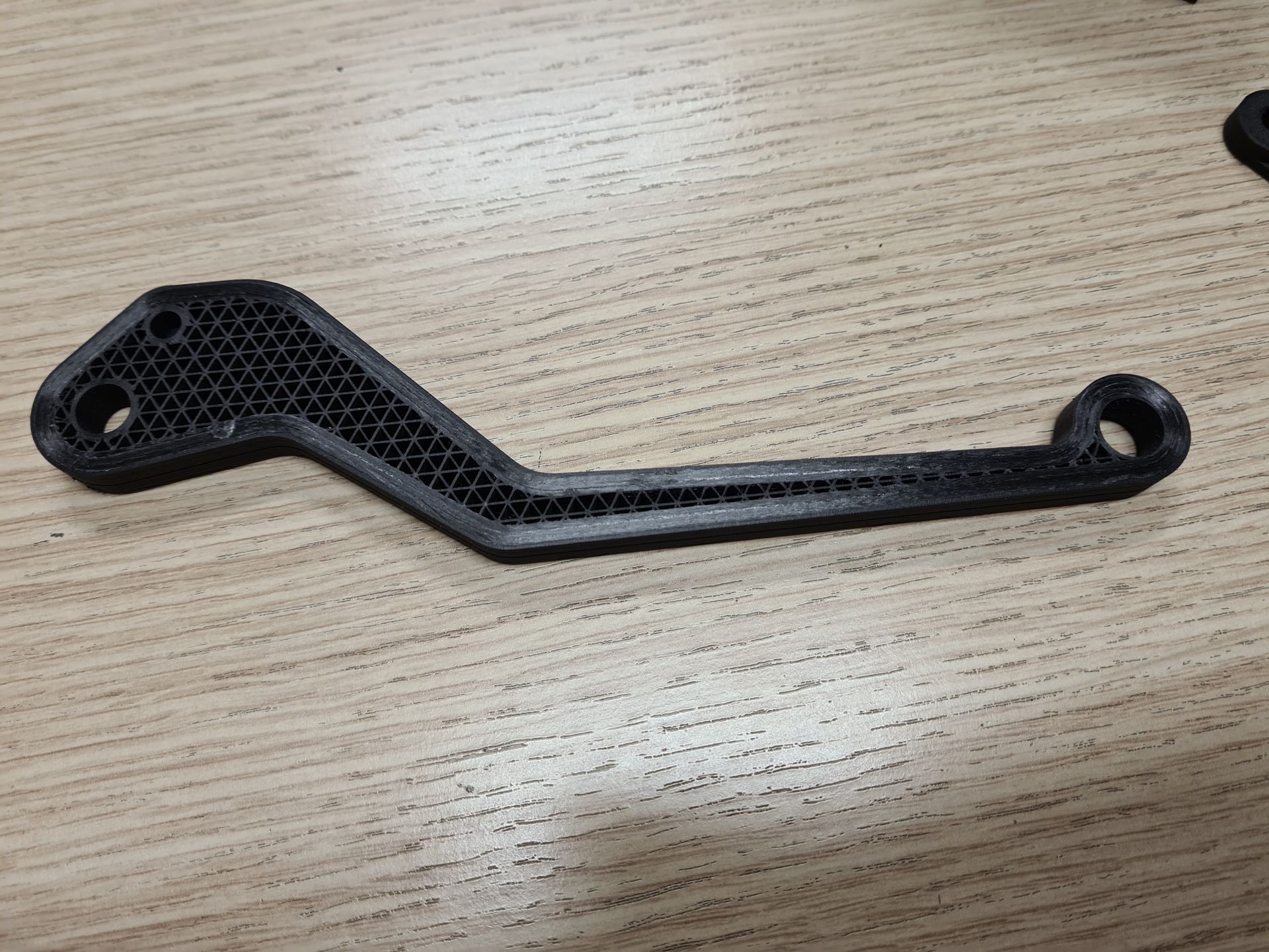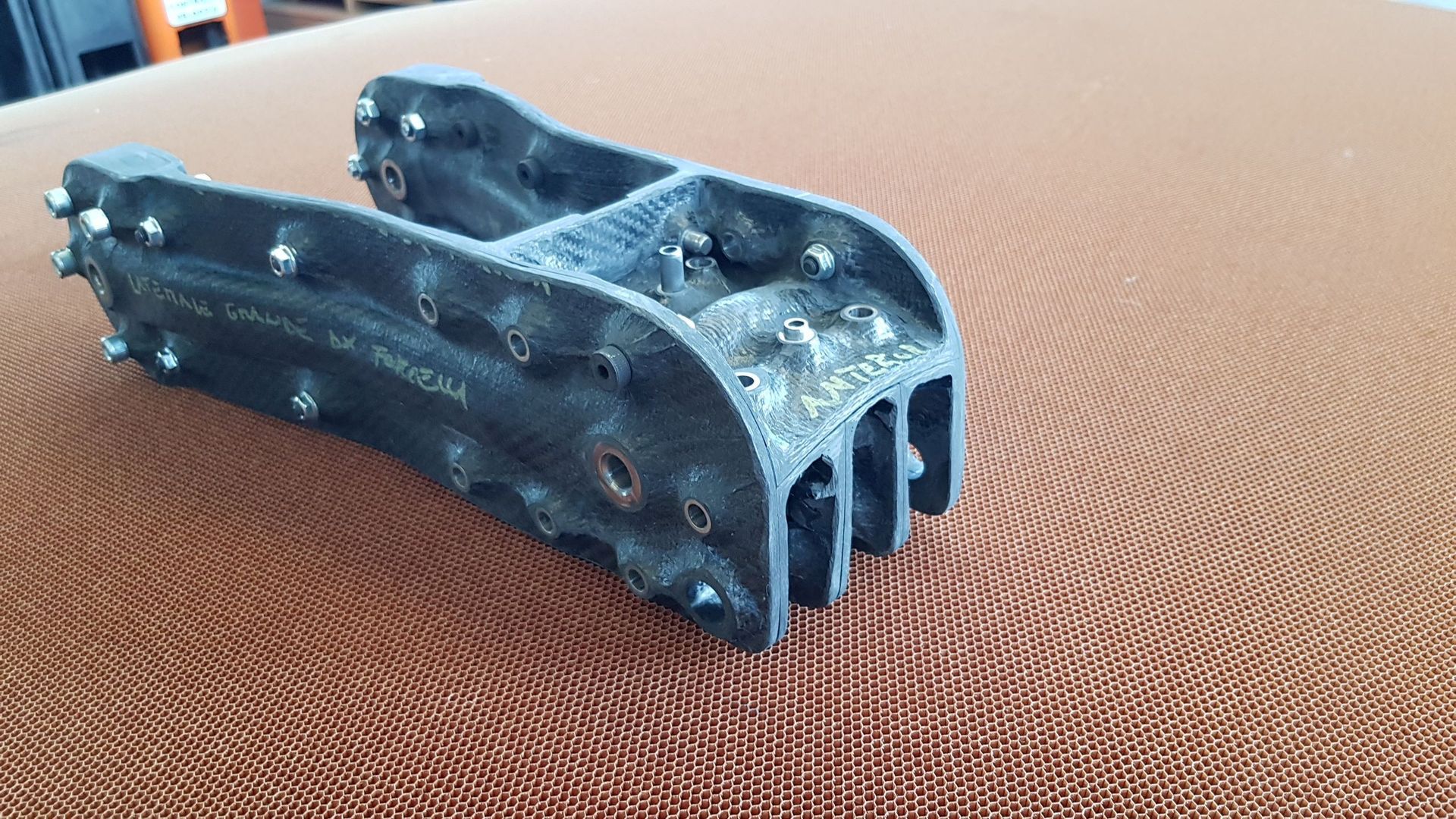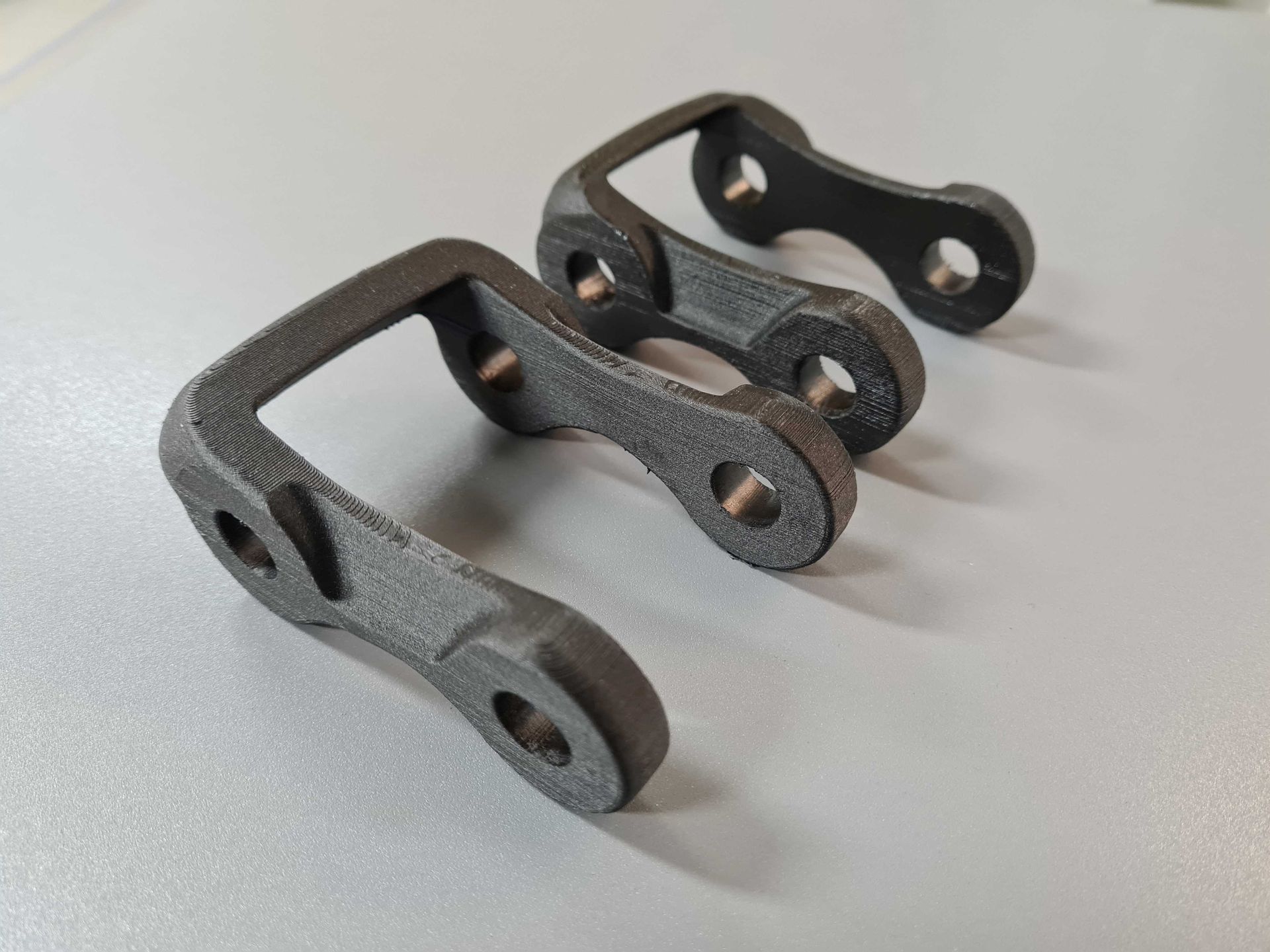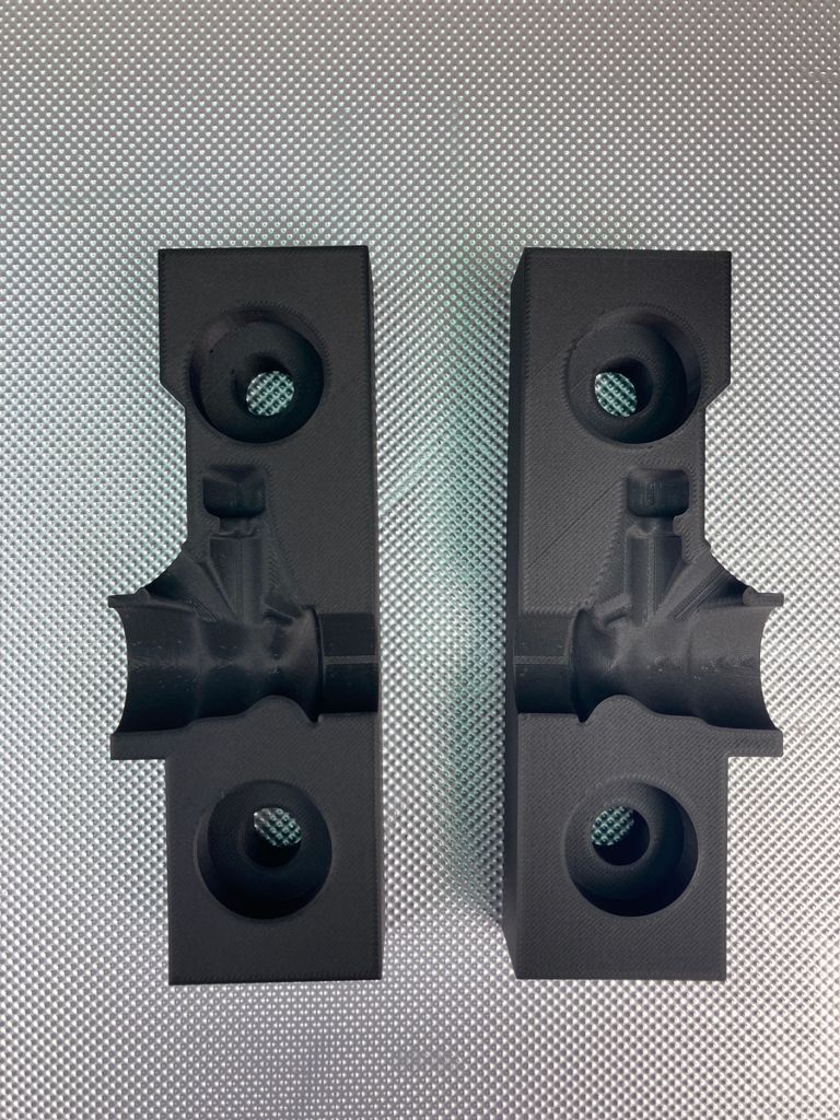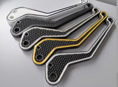 with continuous carbon fibre reinforcement inside. The printer is therefore equipped with 2 nozzles: one that