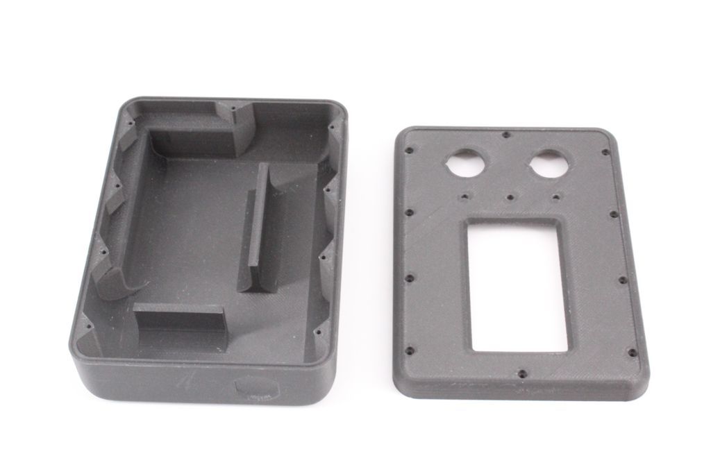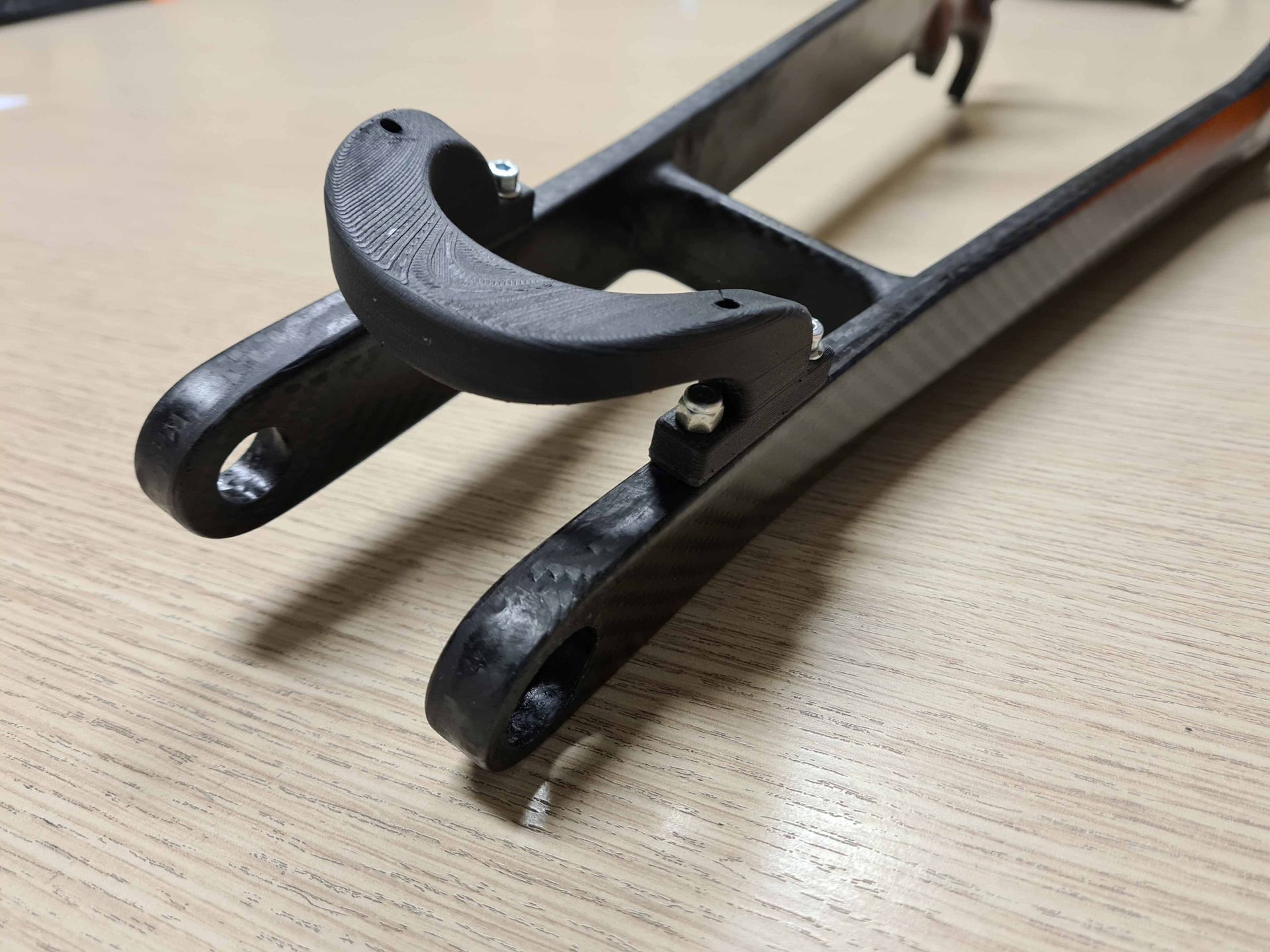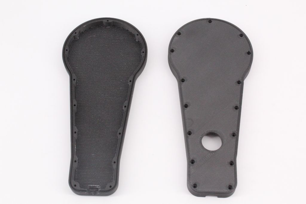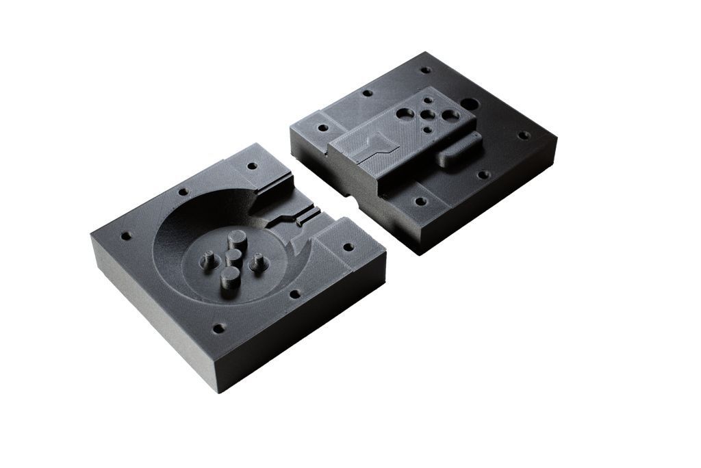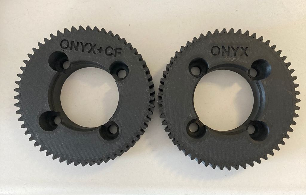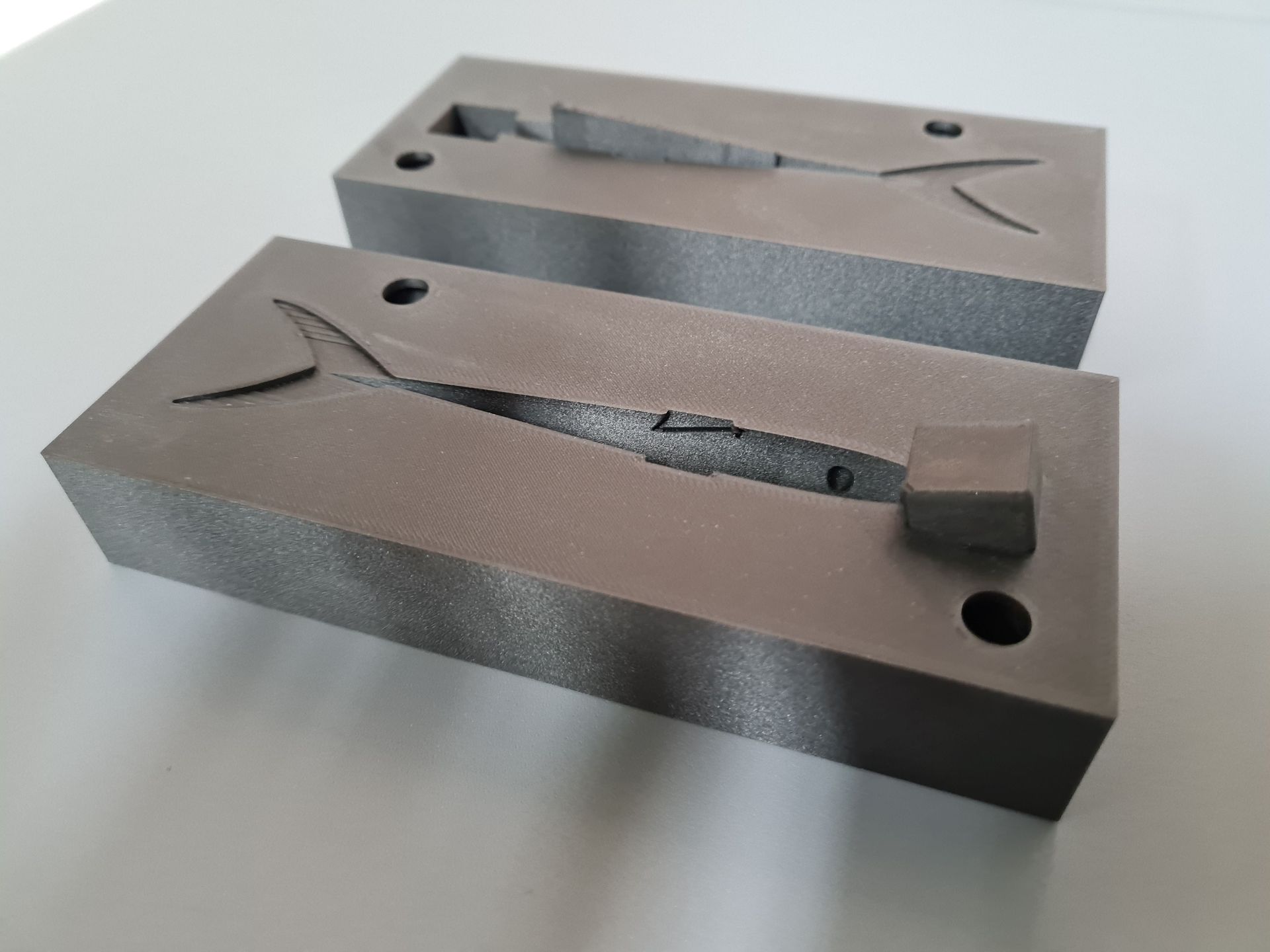 with continuous carbon fibre reinforcement inside. The printer is therefore equipped with 2 nozzles: one that