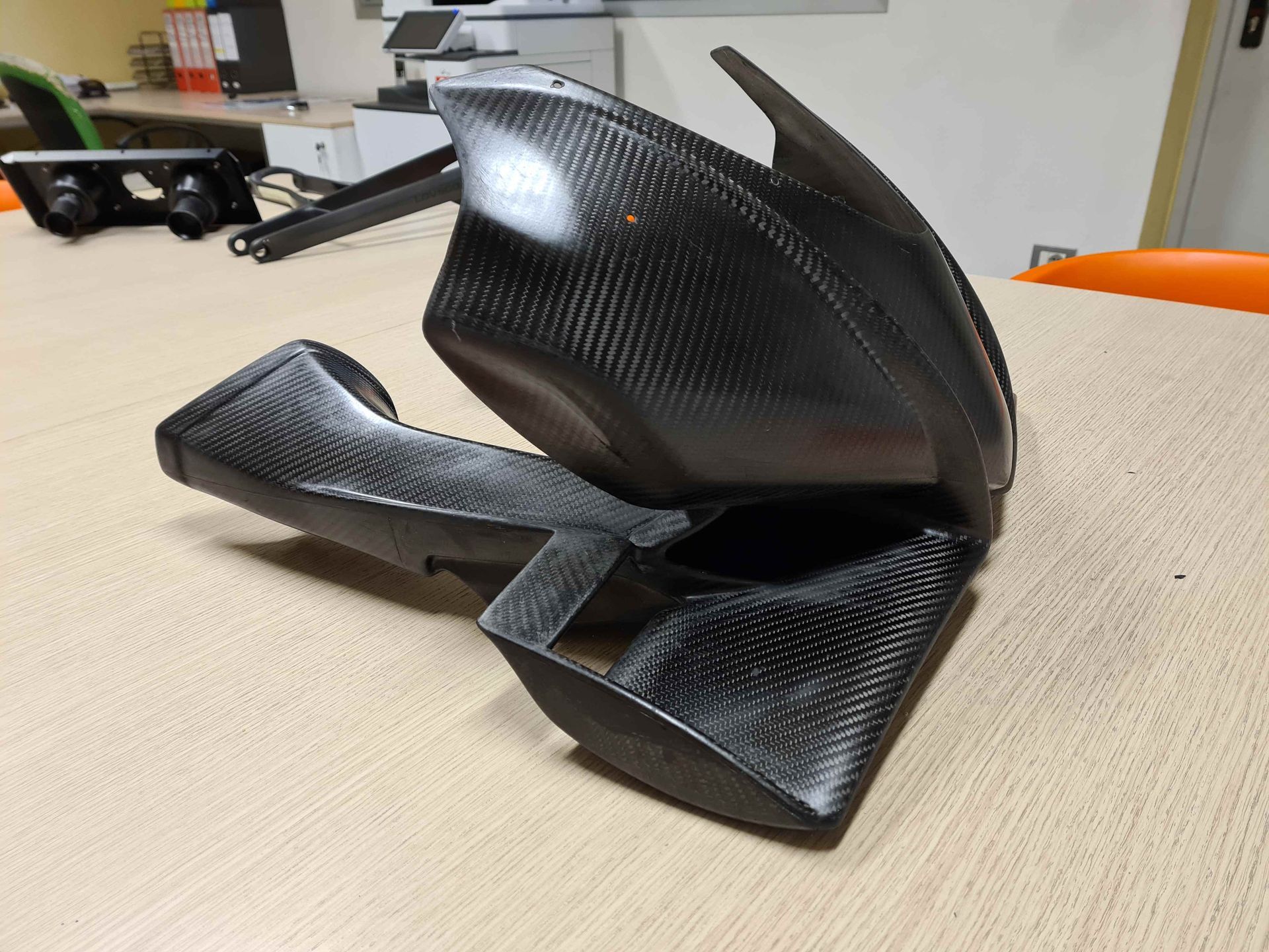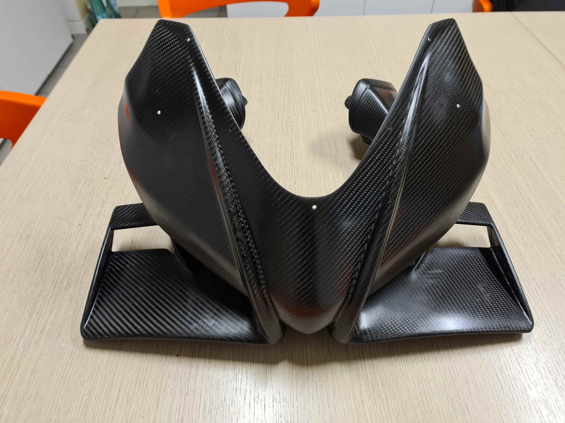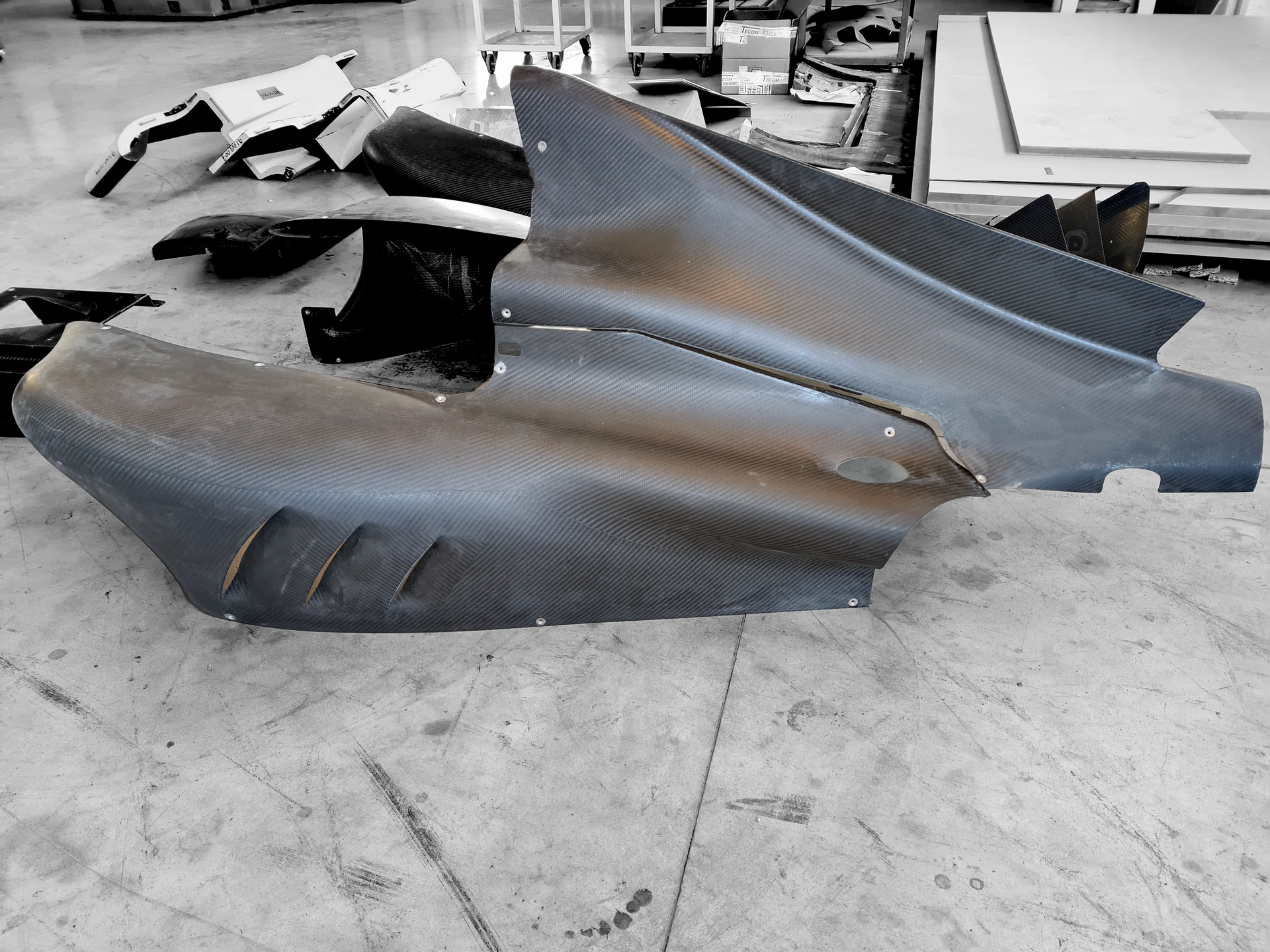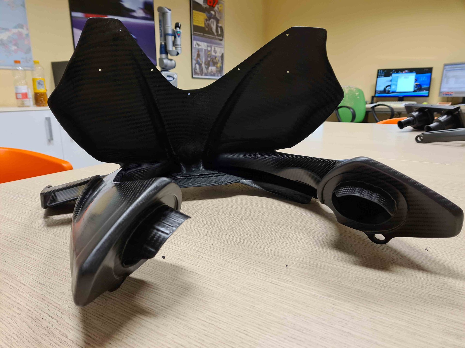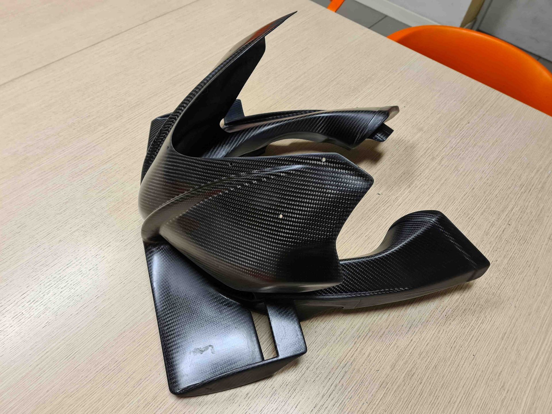 The fairing is made as a one-piece body, including the air ducts and fins using the autoclave process at 5 bar pressure. It is a one-off.