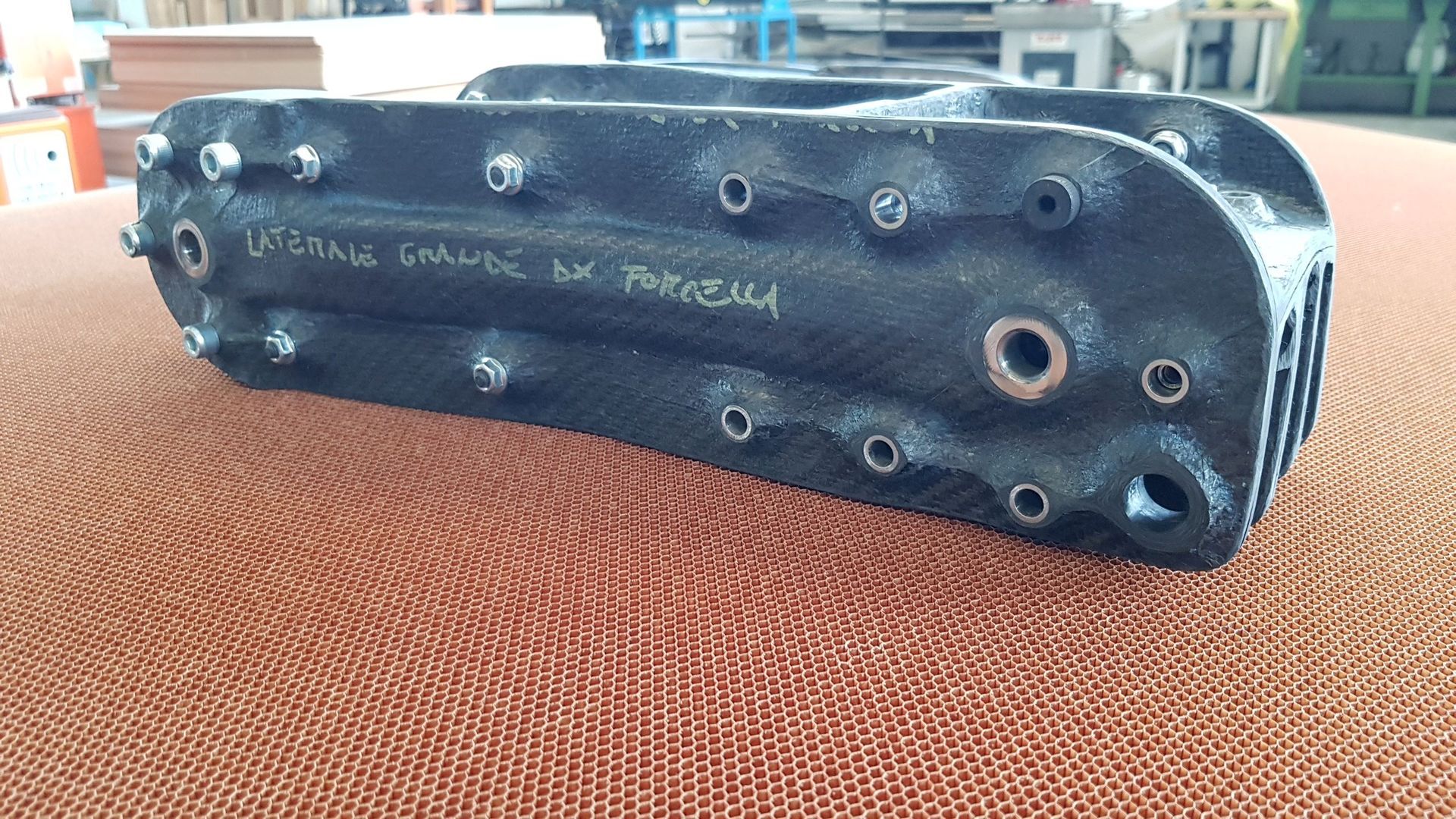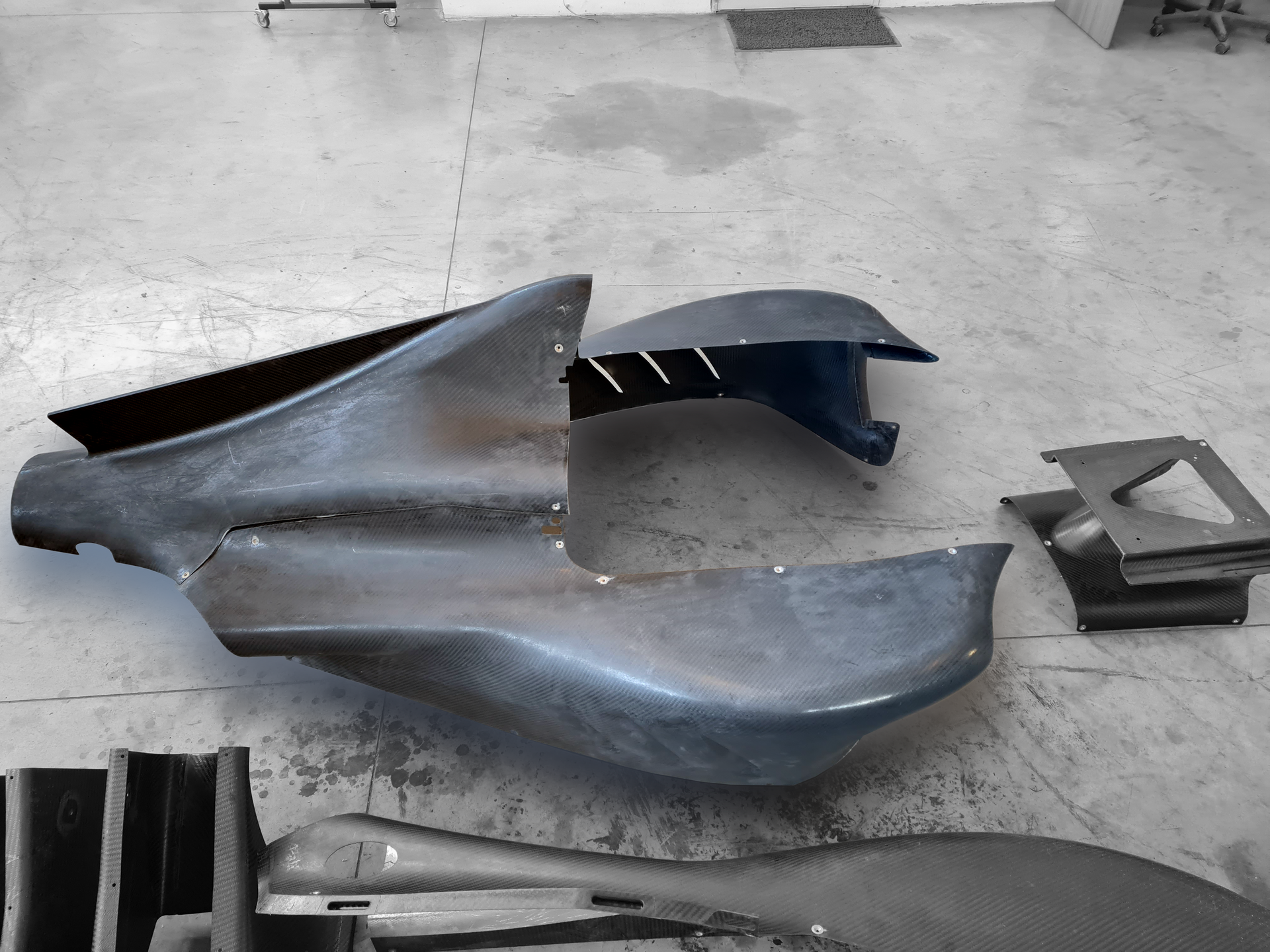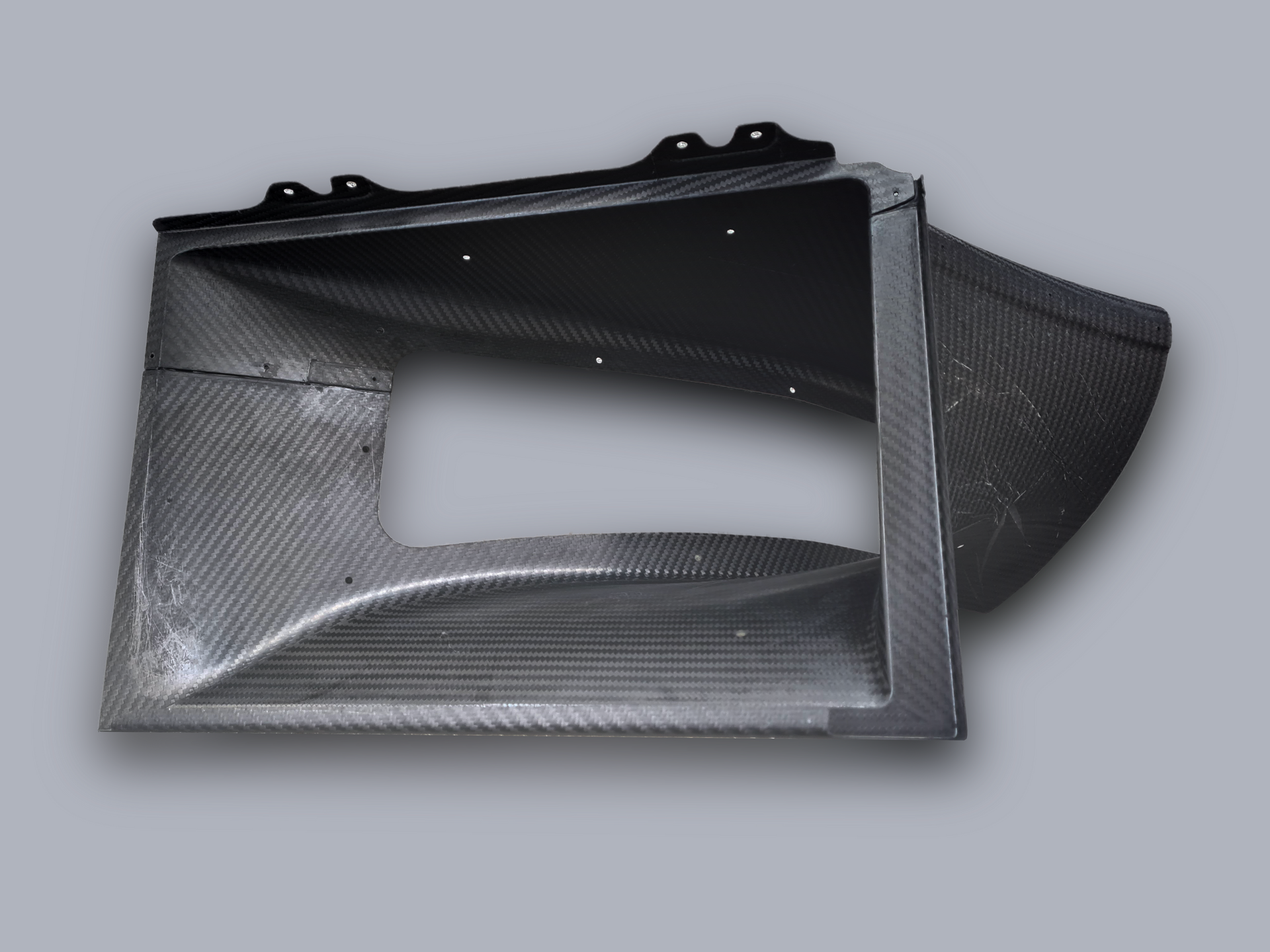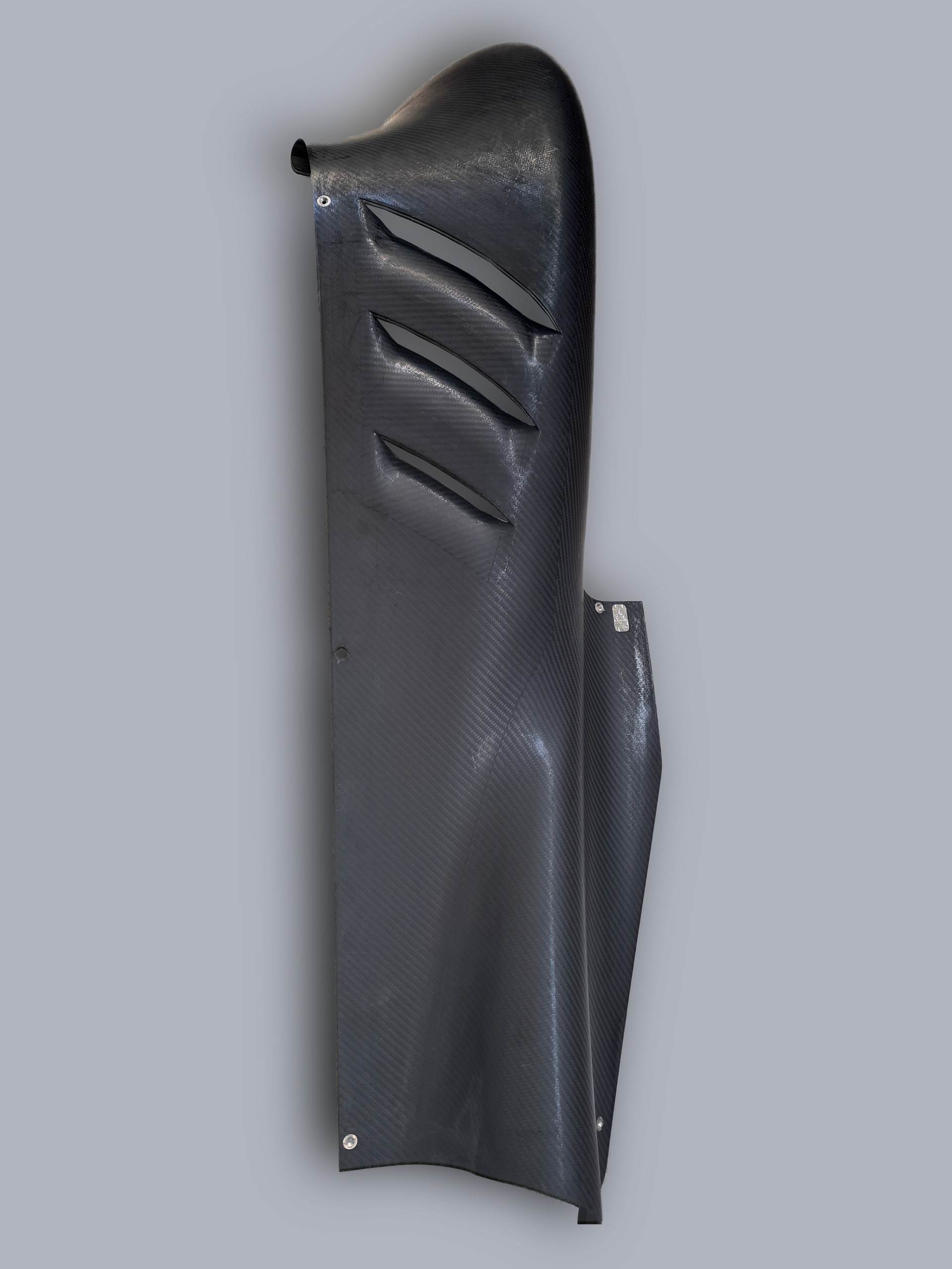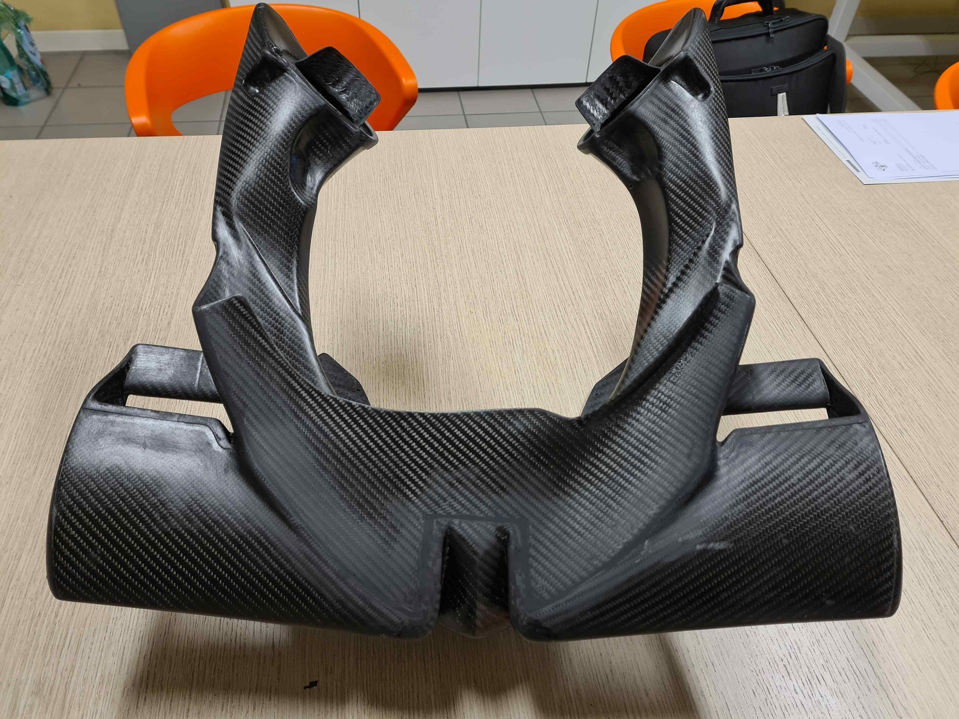 The fairing is made as a one-piece body, including the air ducts and fins using the autoclave process at 5 bar pressure. It is a one-off.