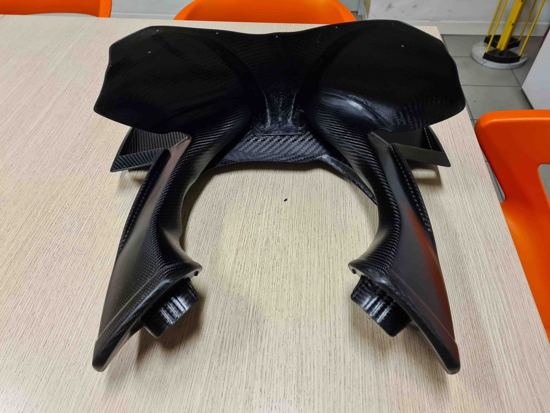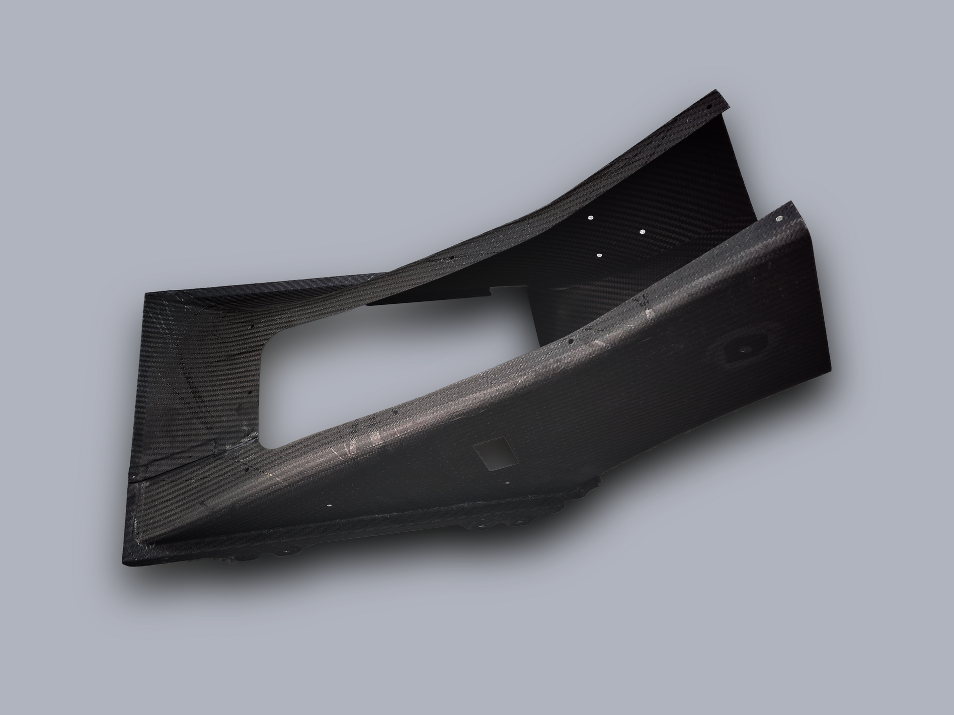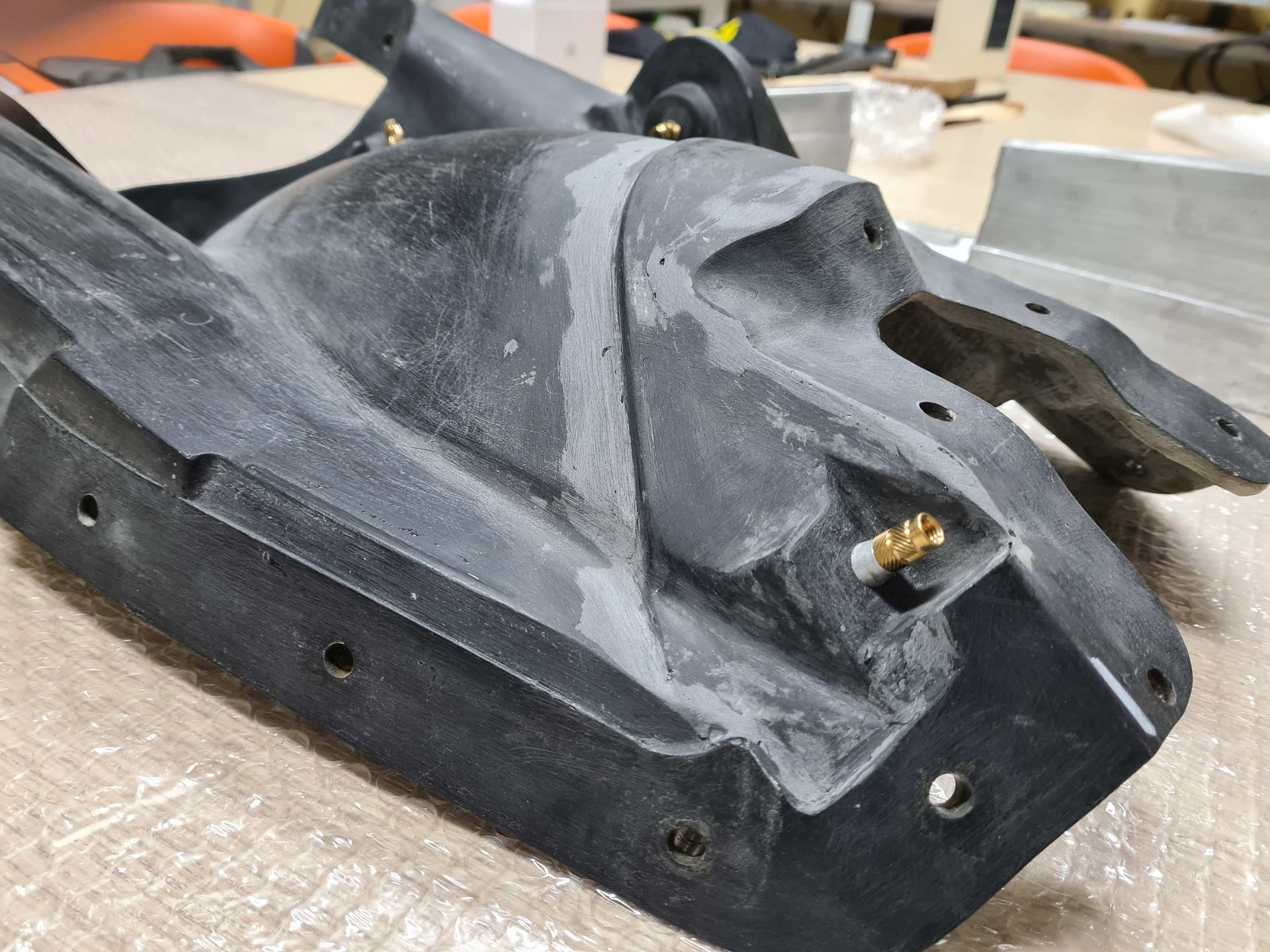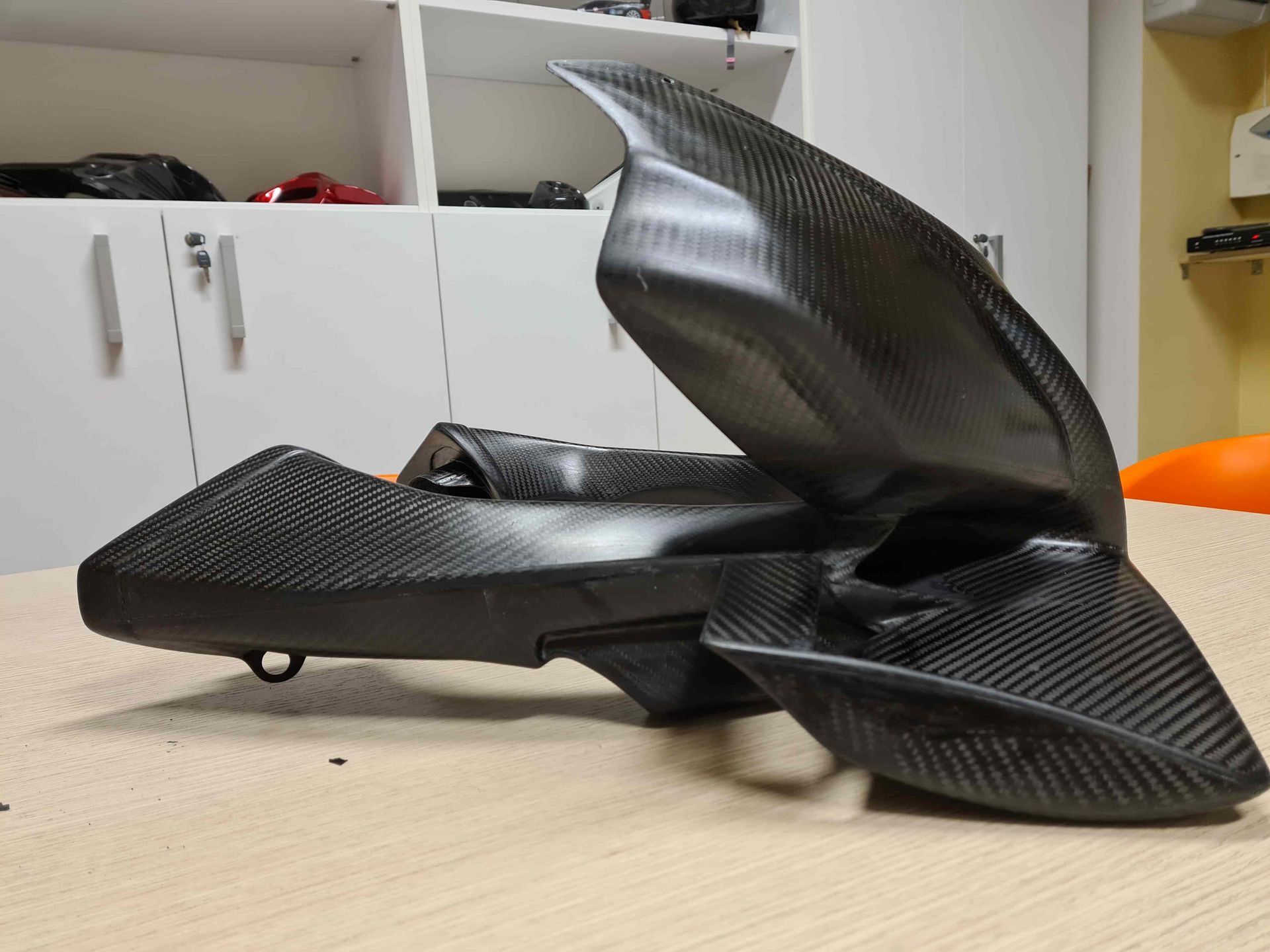 The fairing is made as a one-piece body, including the air ducts and fins using the autoclave process at 5 bar pressure. It is a one-off.