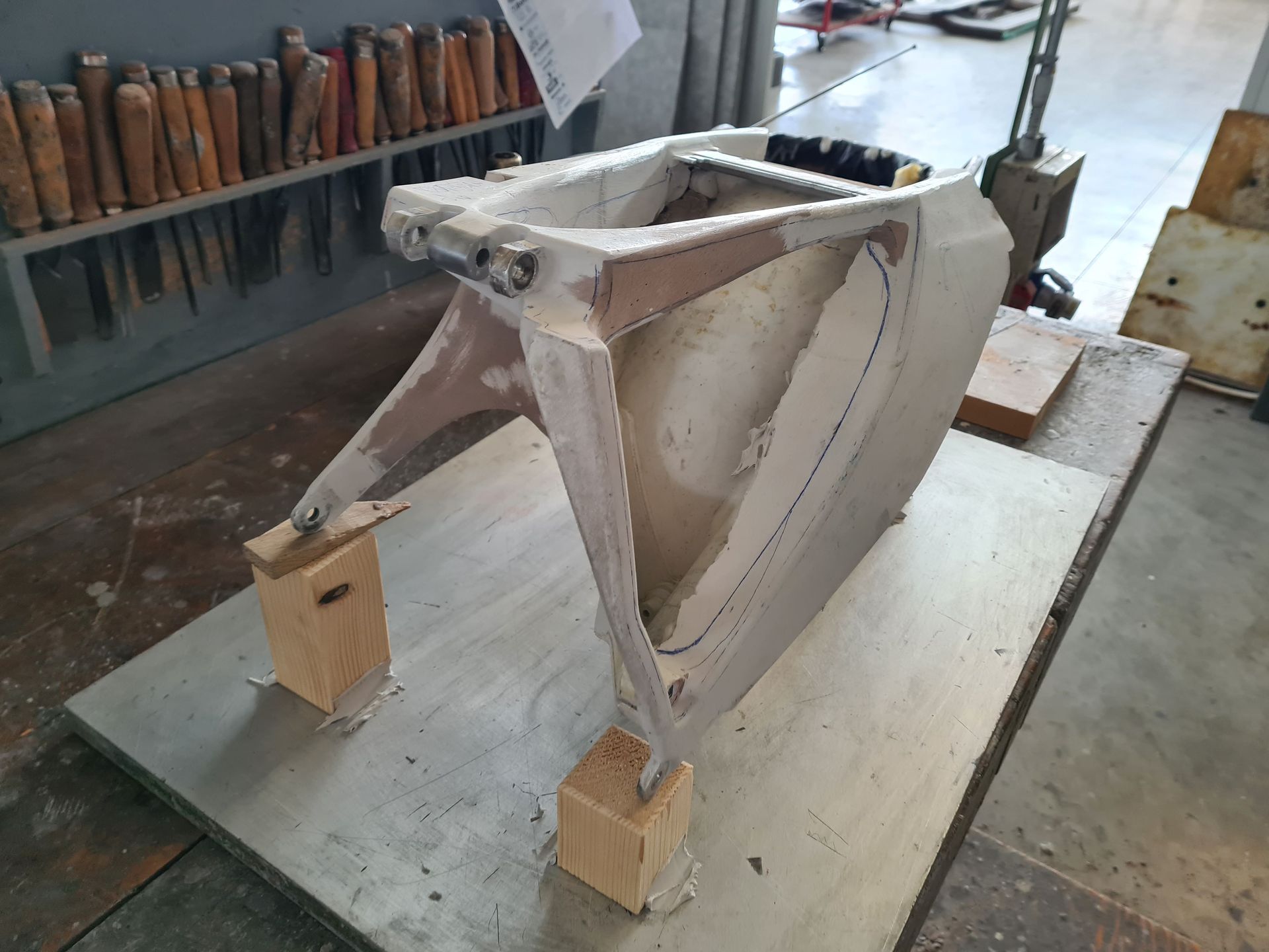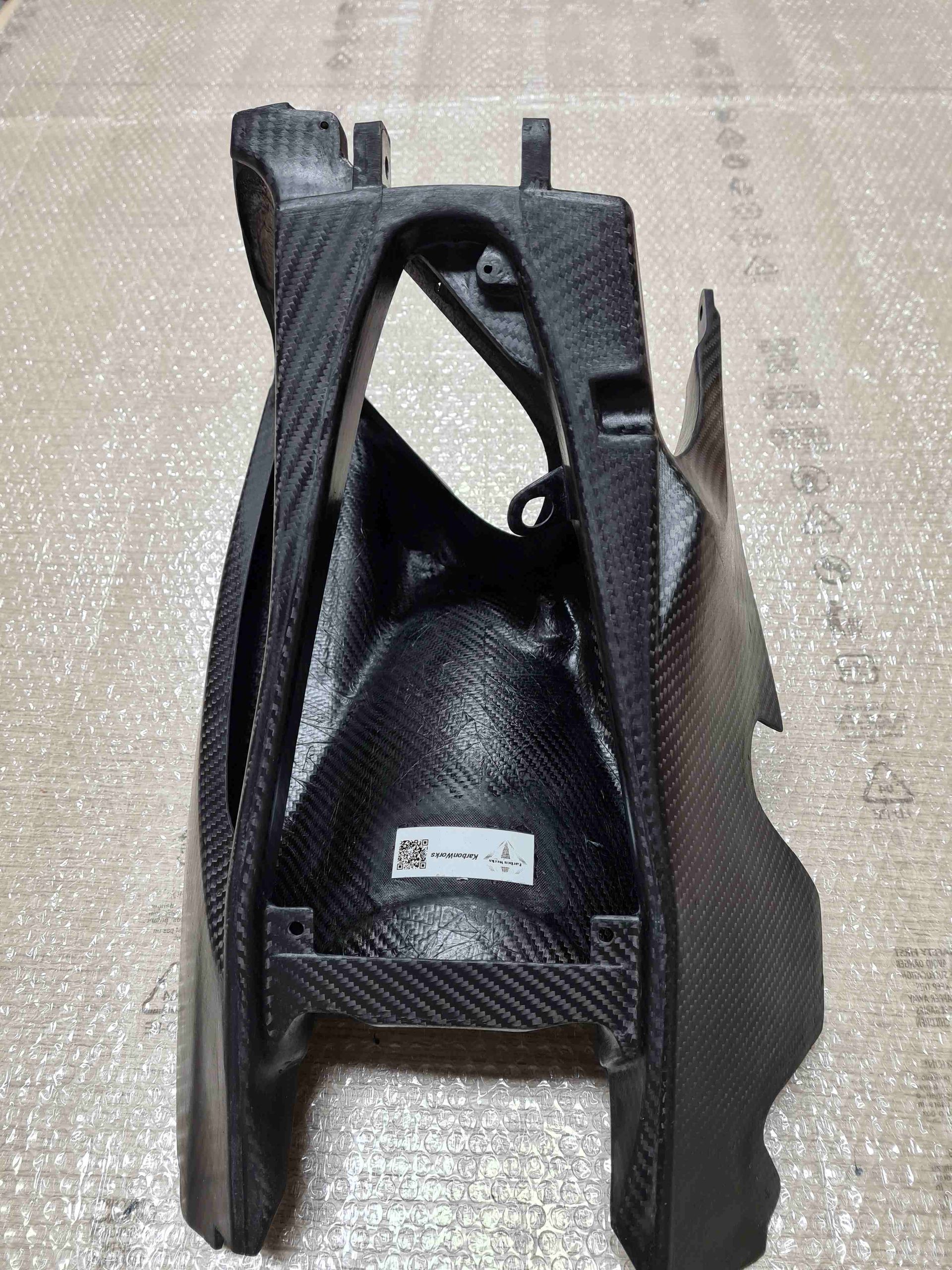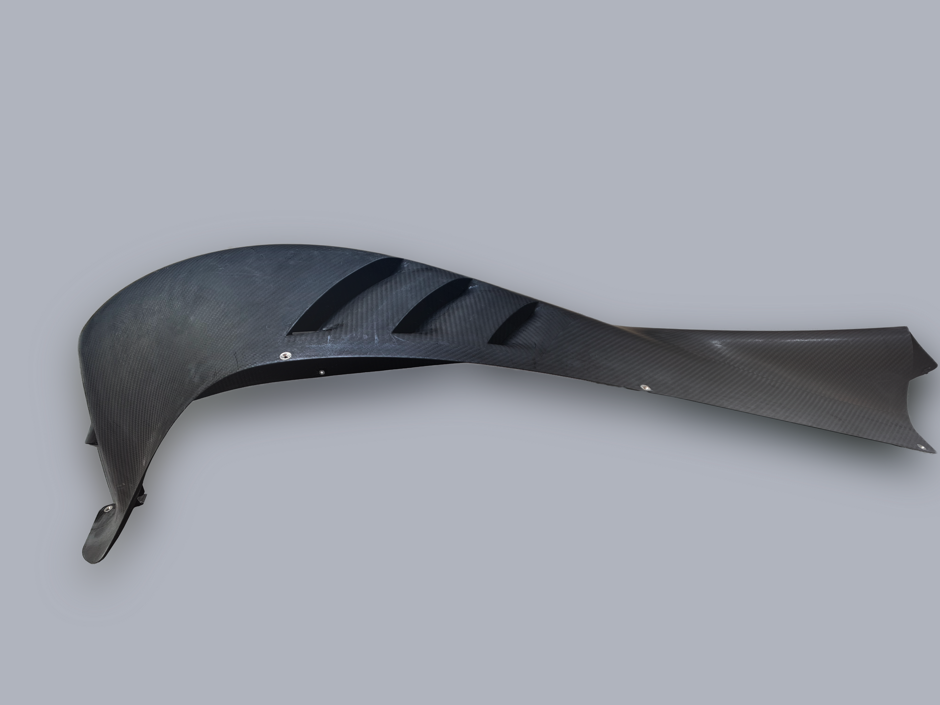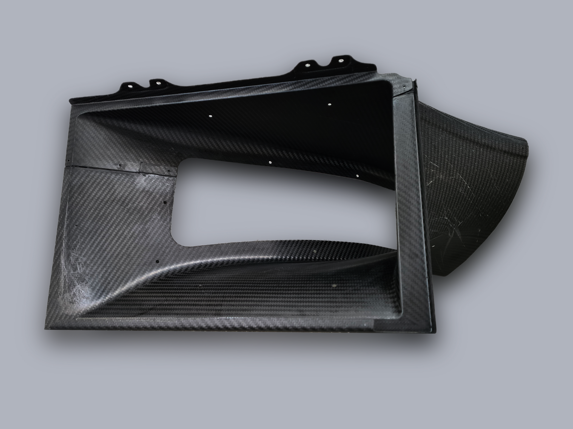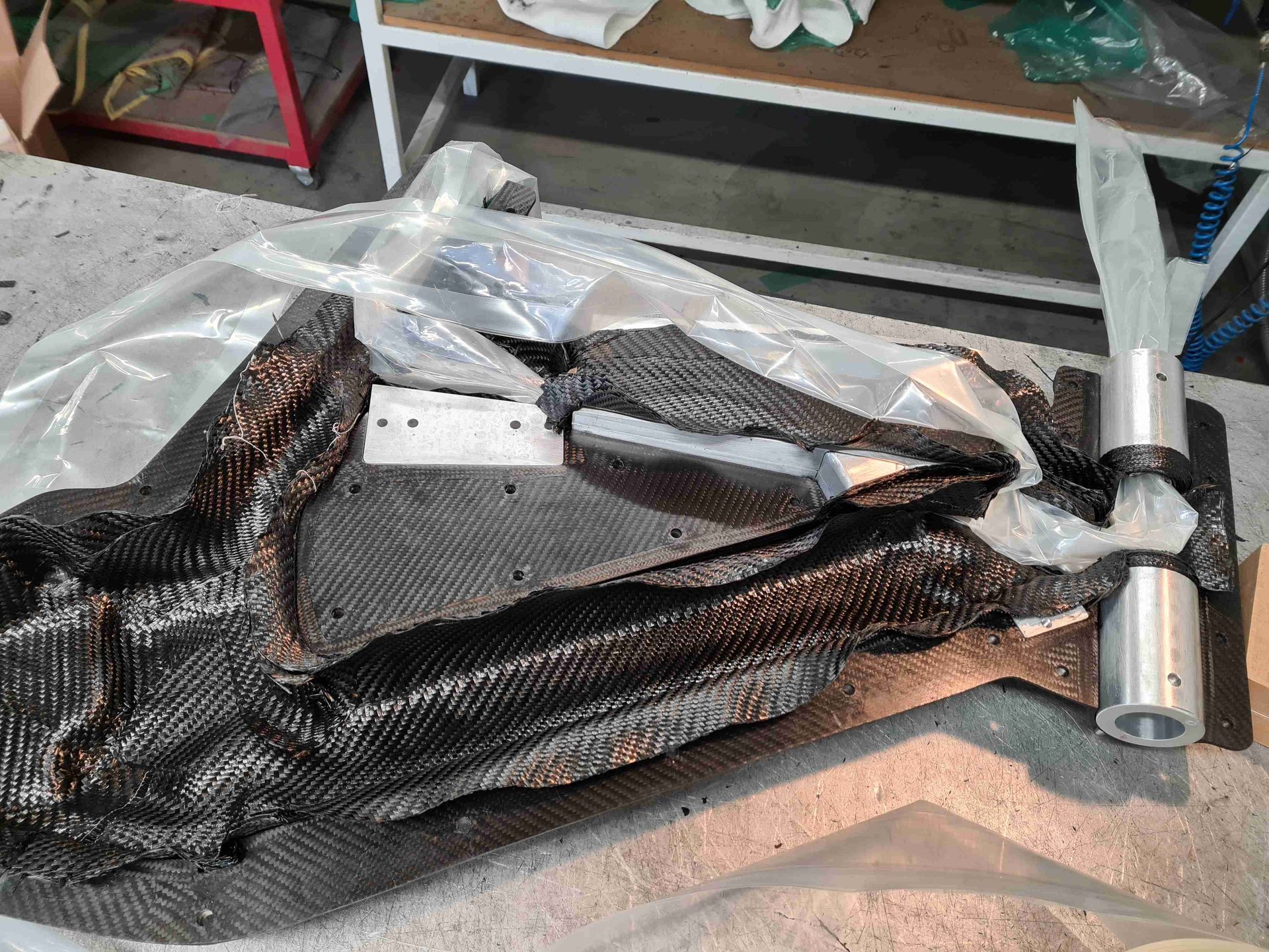The fairing is made as a one-piece body, including the air ducts and fins using the autoclave process at 5 bar pressure. It is a one-off.