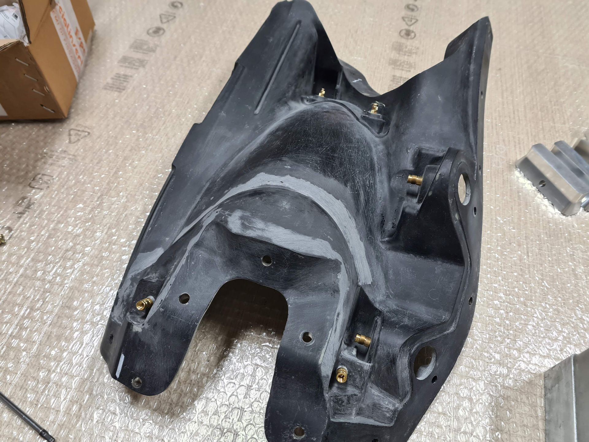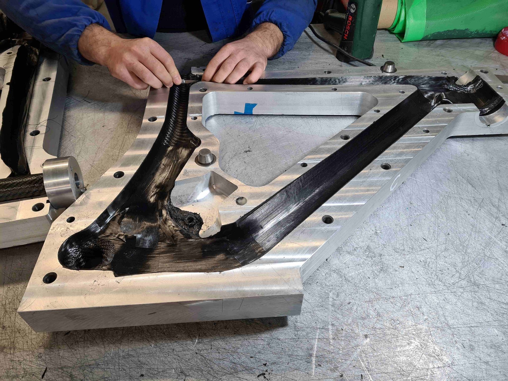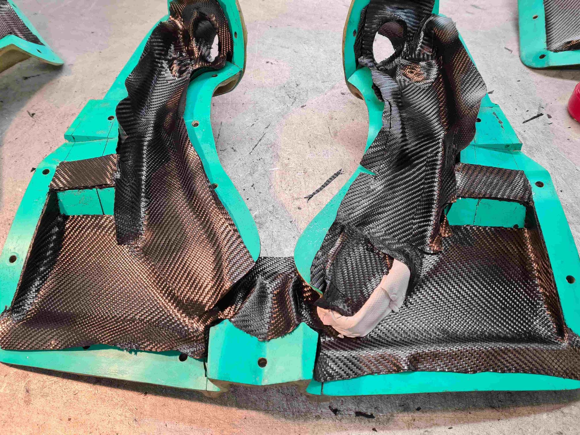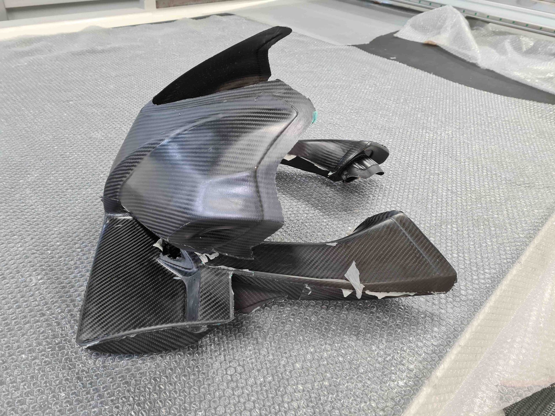 No gluing and no wrapping. The air ducts and front fins are all in place because they are machined directly from the mould together with the fairing in a structural manner.