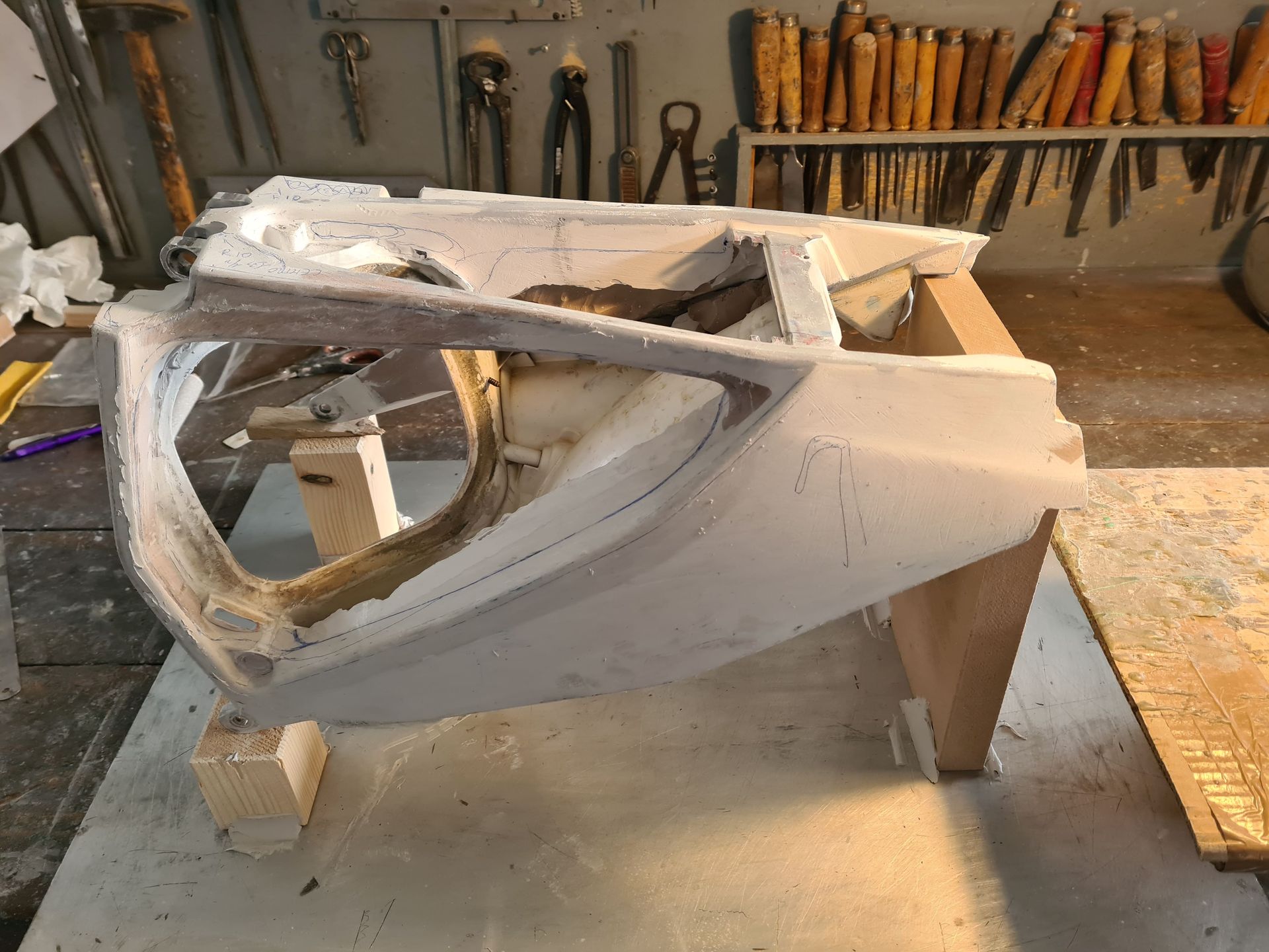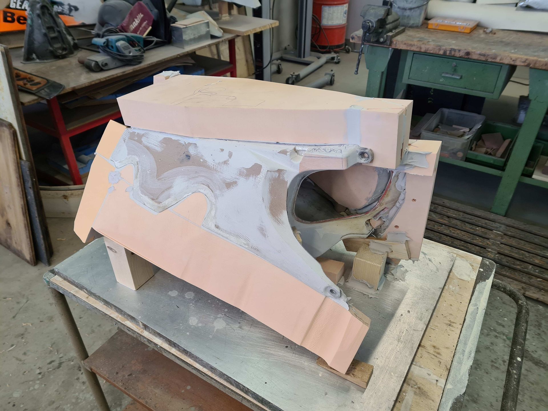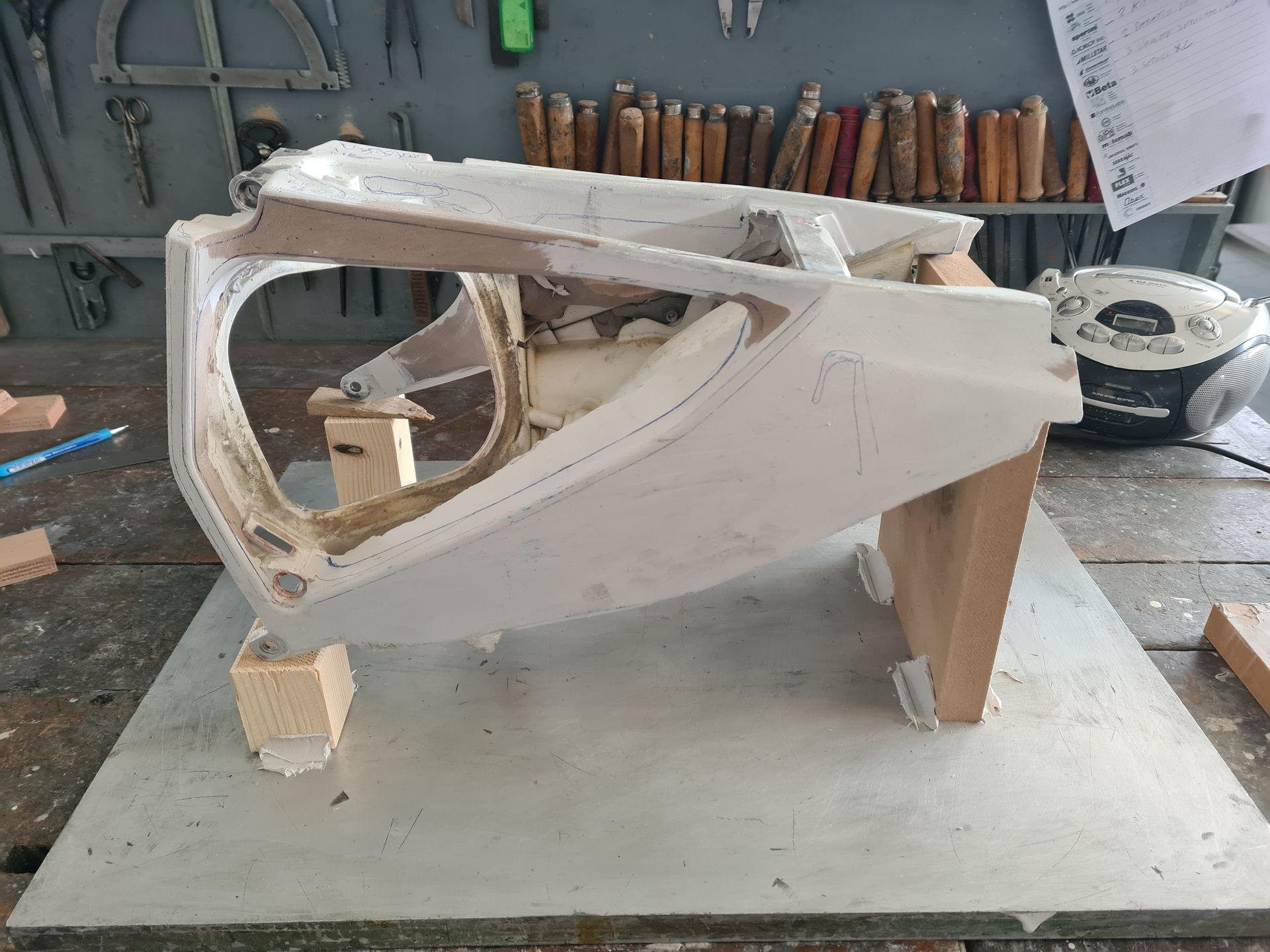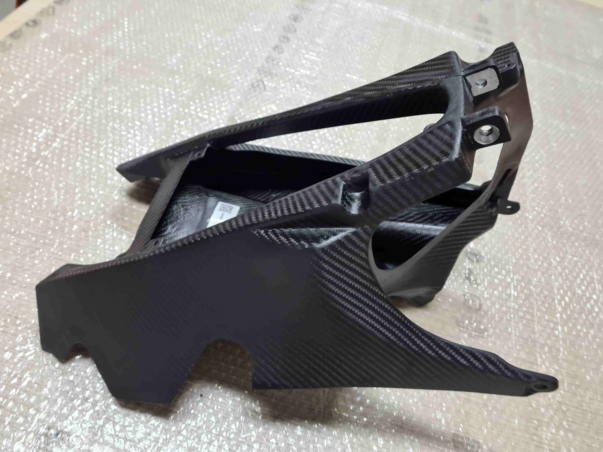 No gluing and no wrapping. The air ducts and front fins are all in place because they are machined directly from the mould together with the fairing in a structural manner.