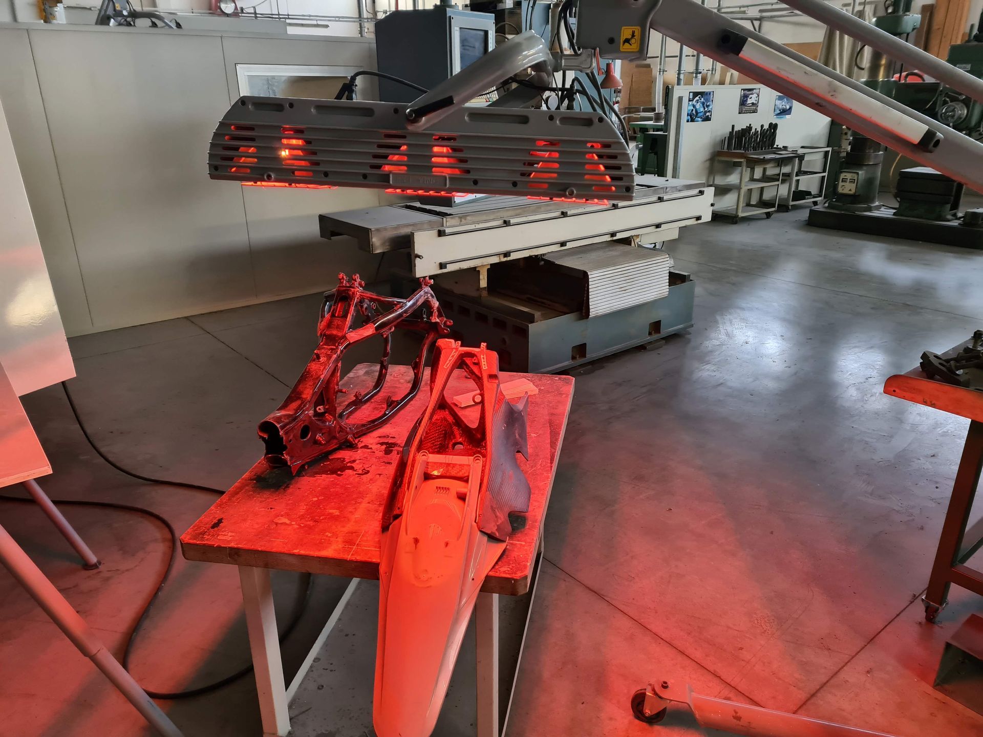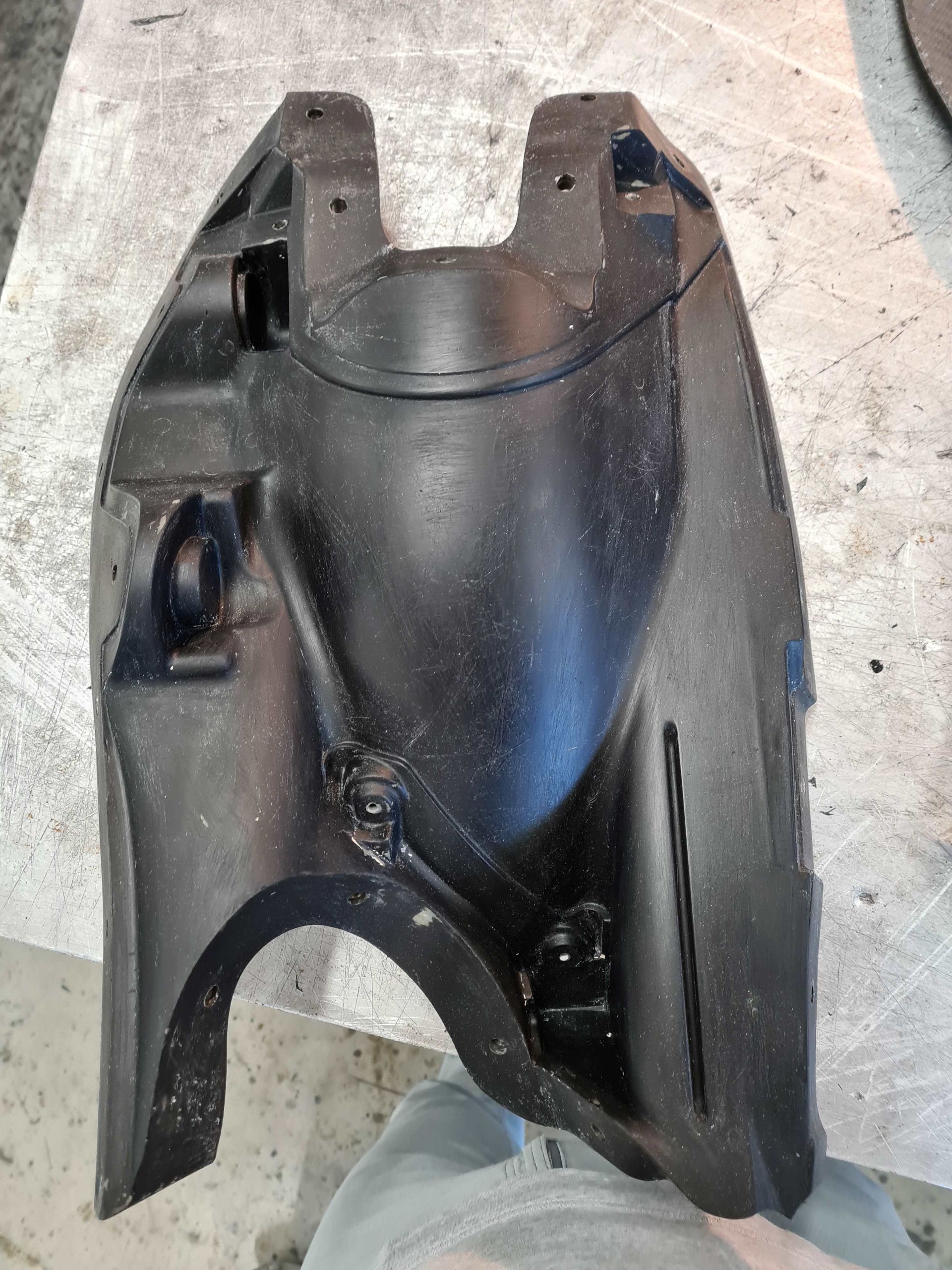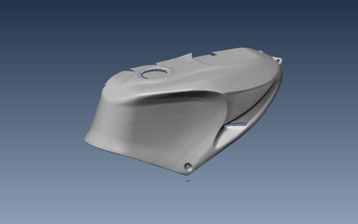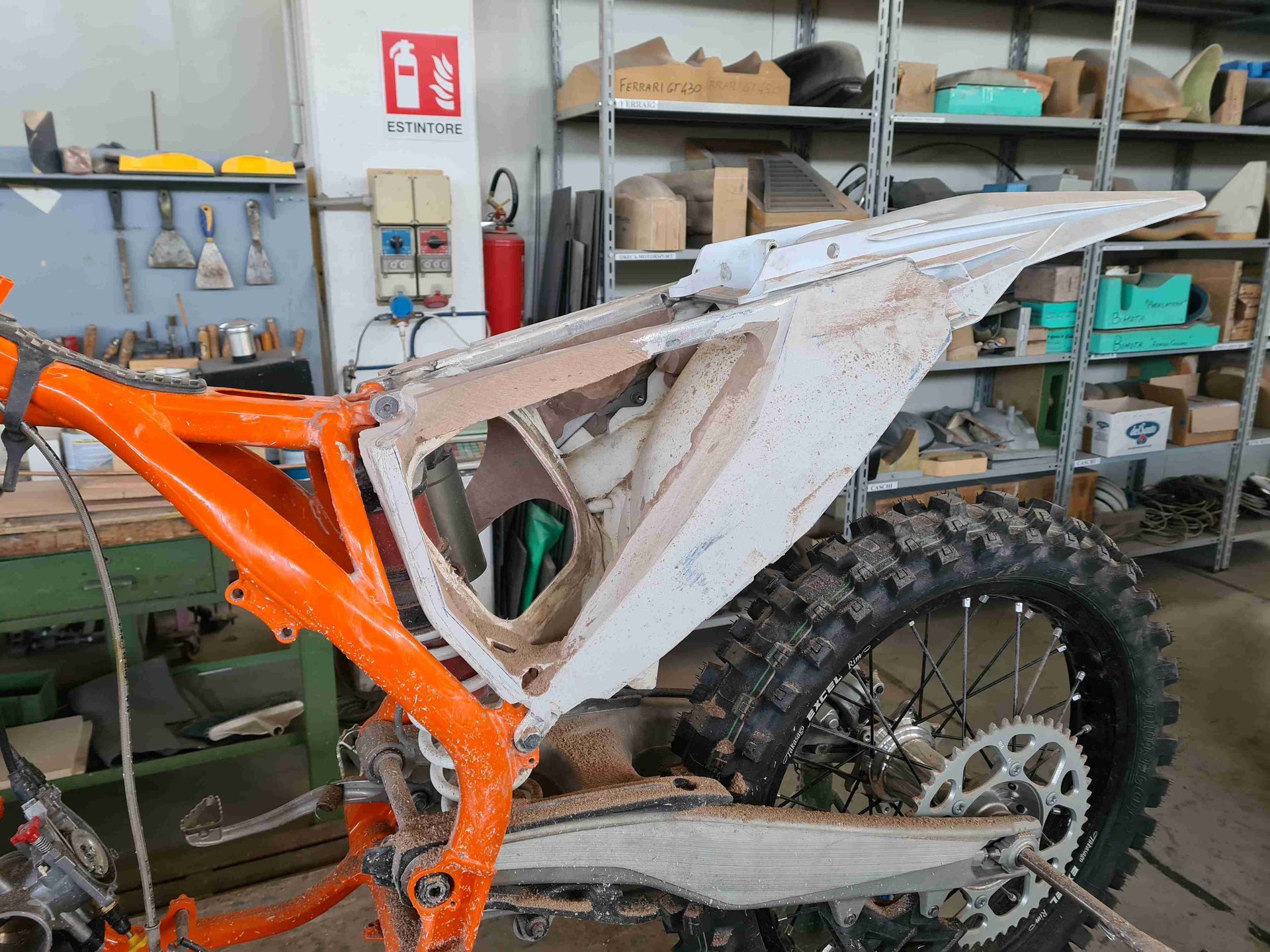 No gluing and no wrapping. The air ducts and front fins are all in place because they are machined directly from the mould together with the fairing in a structural manner.