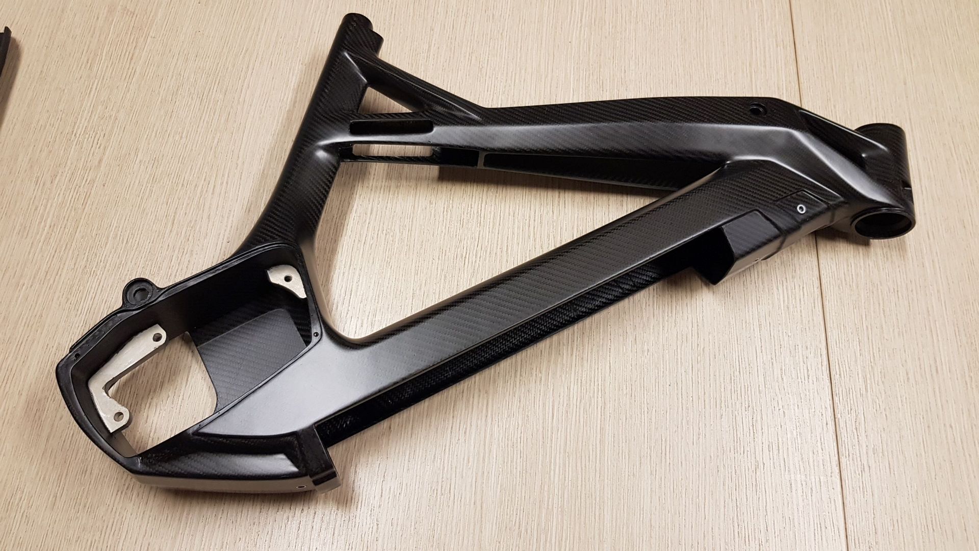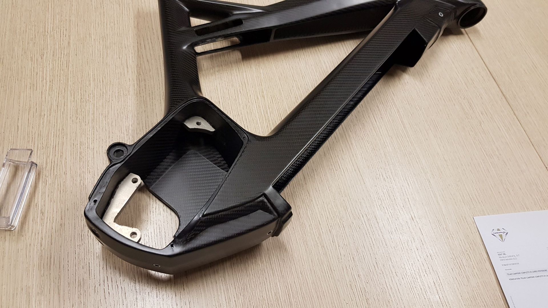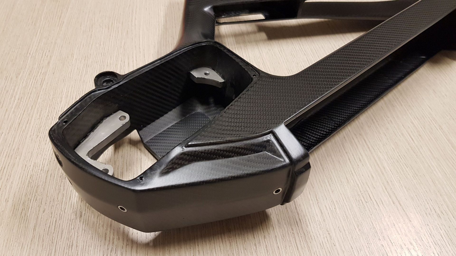 The frame and rear undercarriage is monocoque laminated in an autoclave at 5 bar pressure.