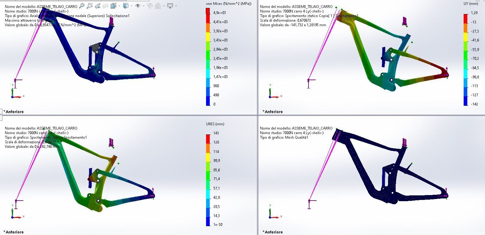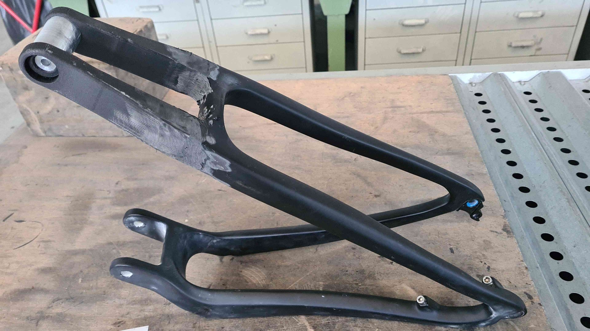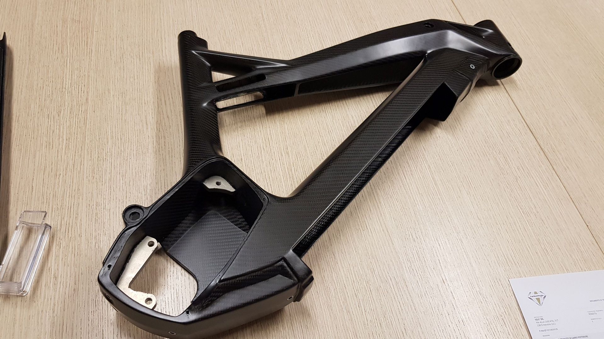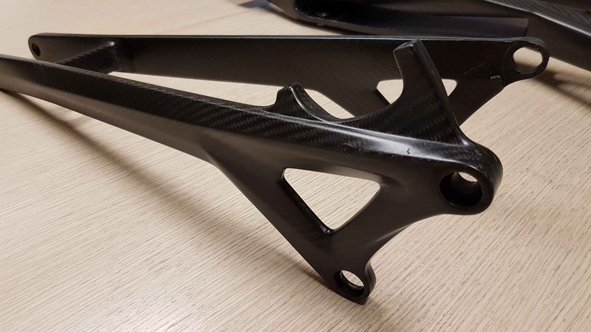 The frame and rear undercarriage is monocoque laminated in an autoclave at 5 bar pressure.